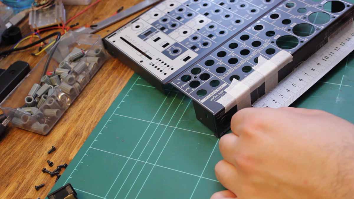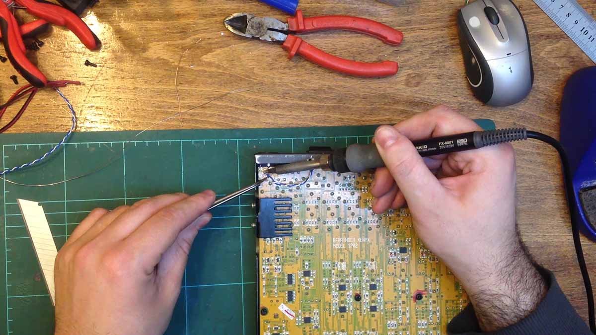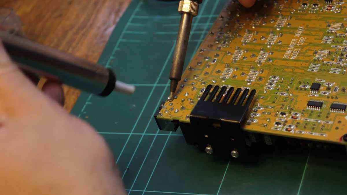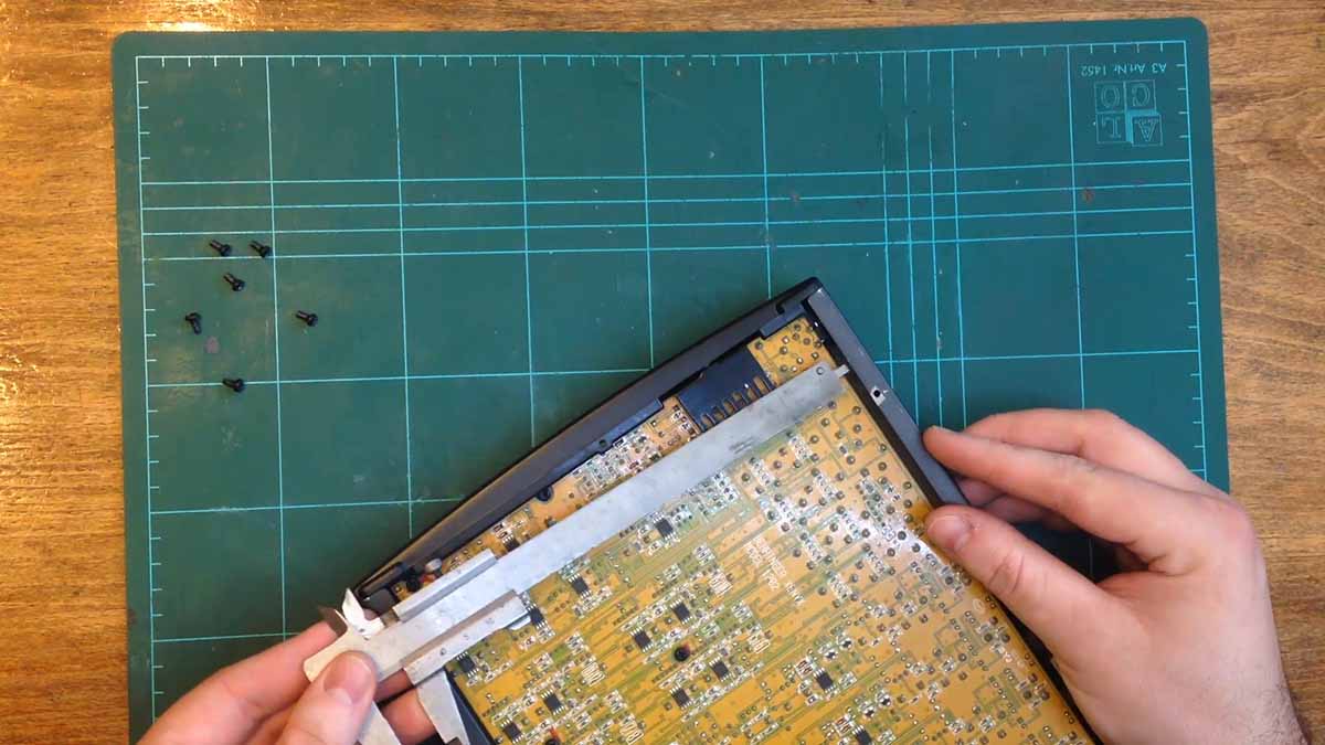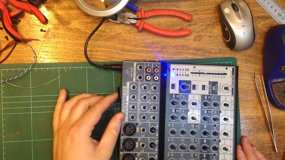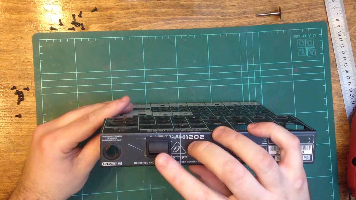 The first step is to disassemble the back of the unit and have a look at how the power is connected to the mixer. With the cover off, I measured the depth available from the edge of the PCB to the outside case.